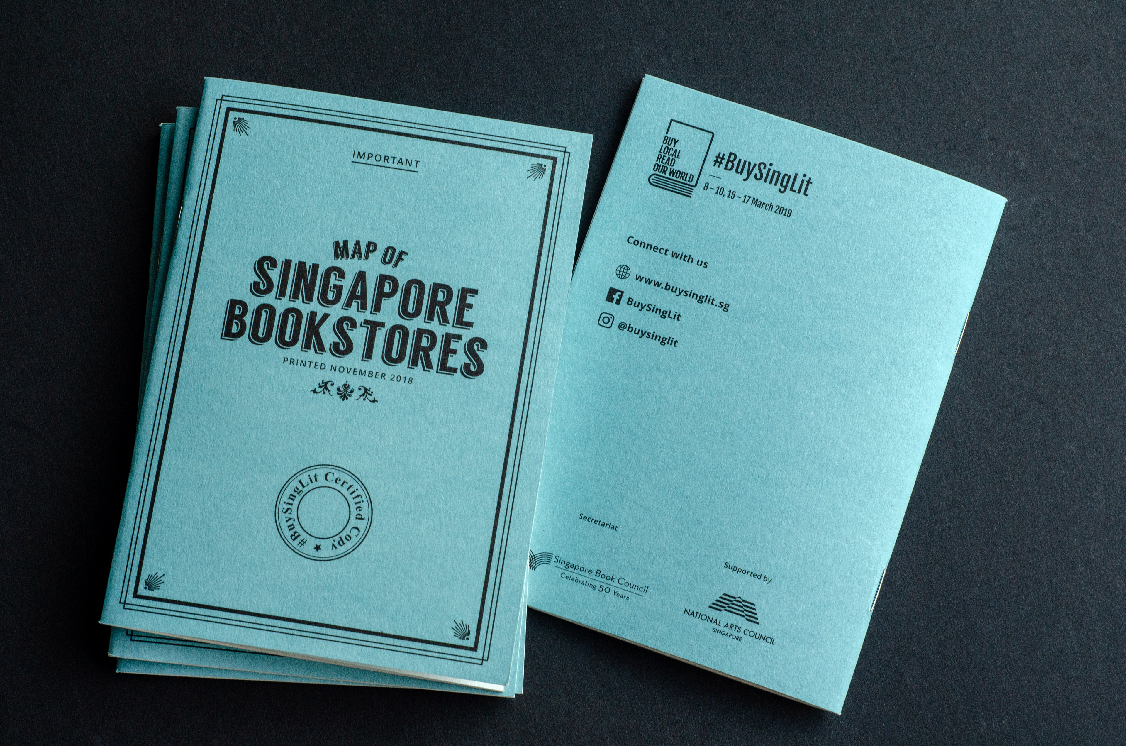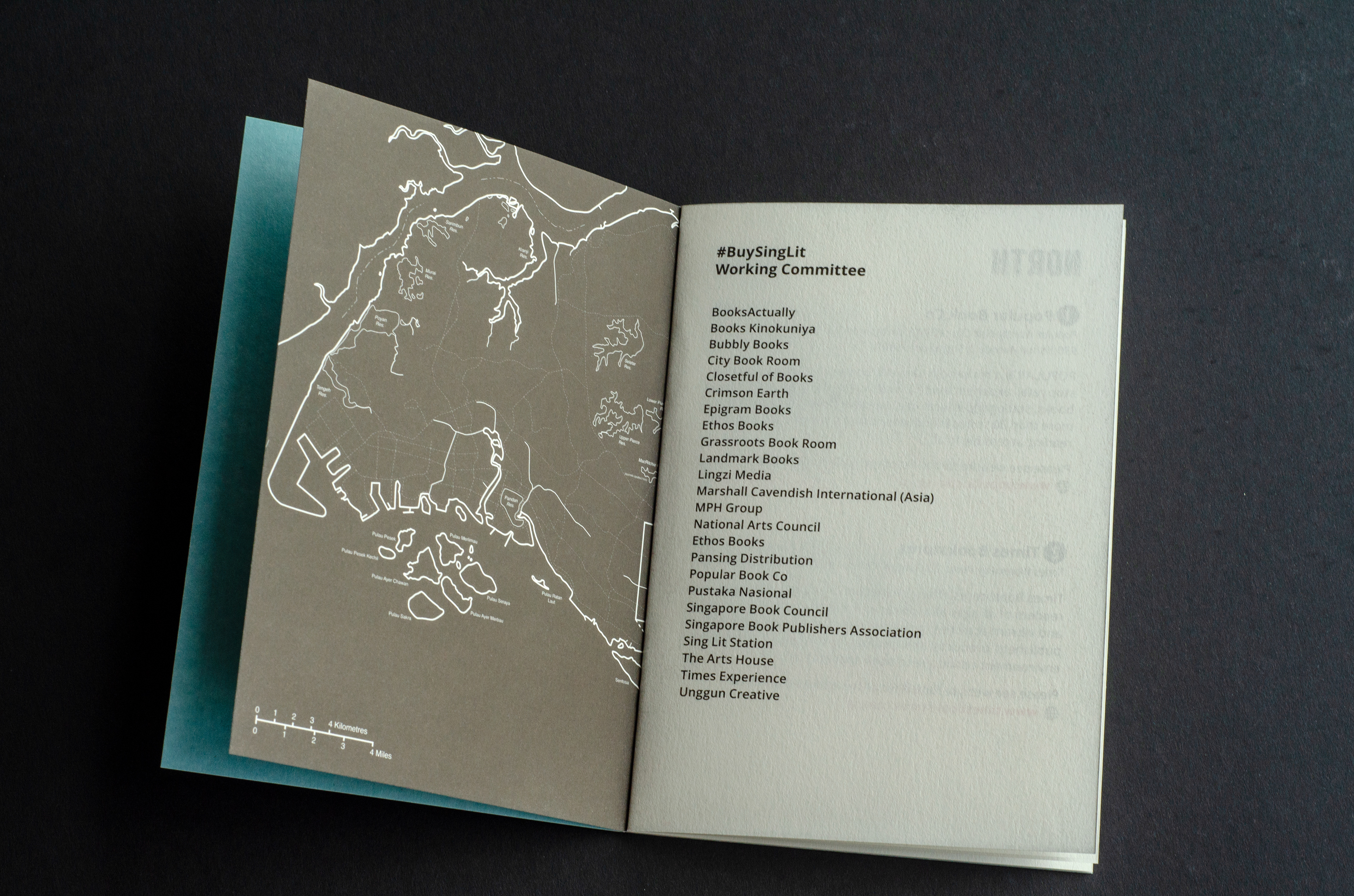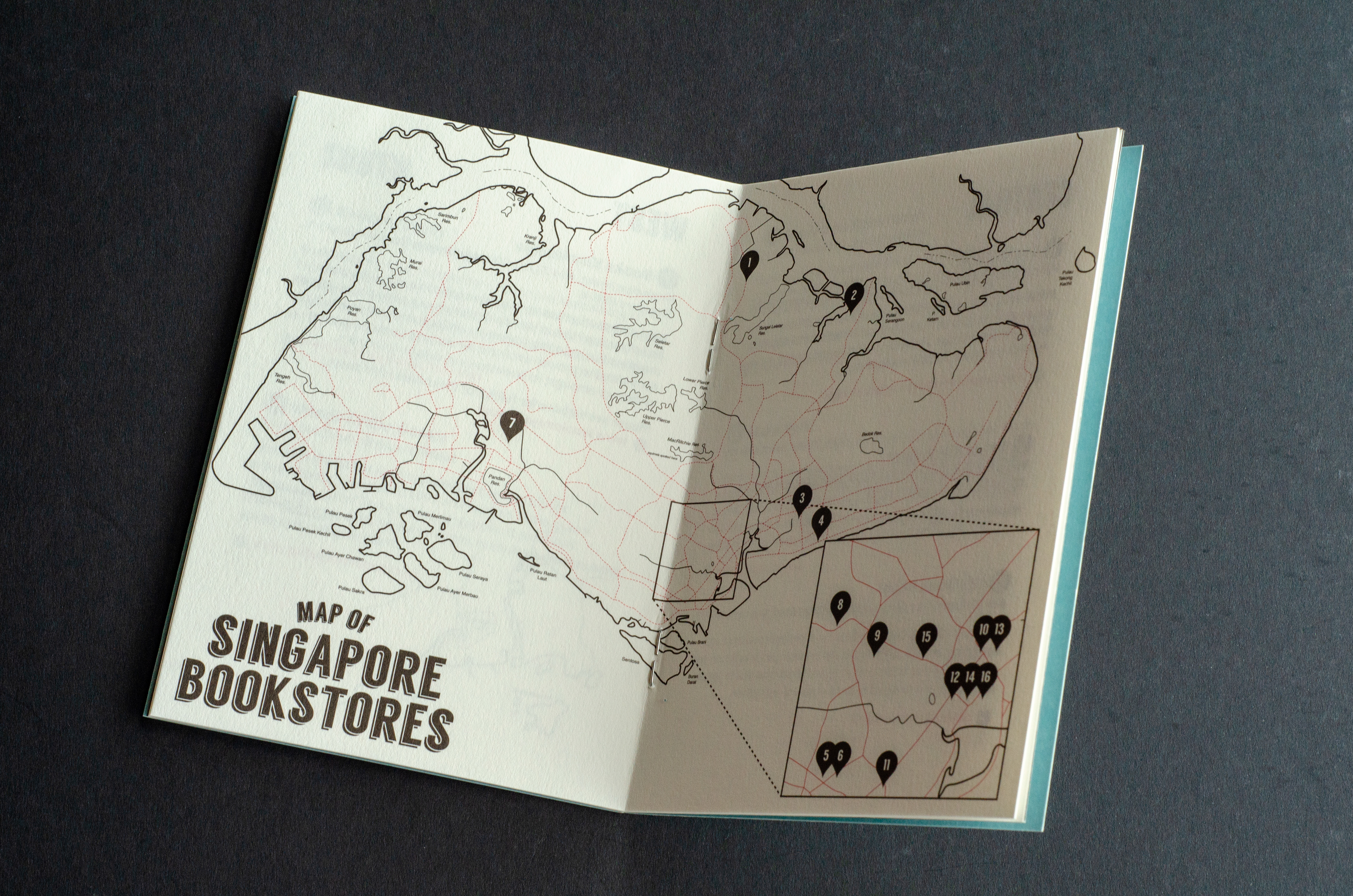 A teaser created for the upcoming BuySingLit event. The booklet contains a map showing participating bookstores. It is modelled after the old Singapore street maps from 1954.