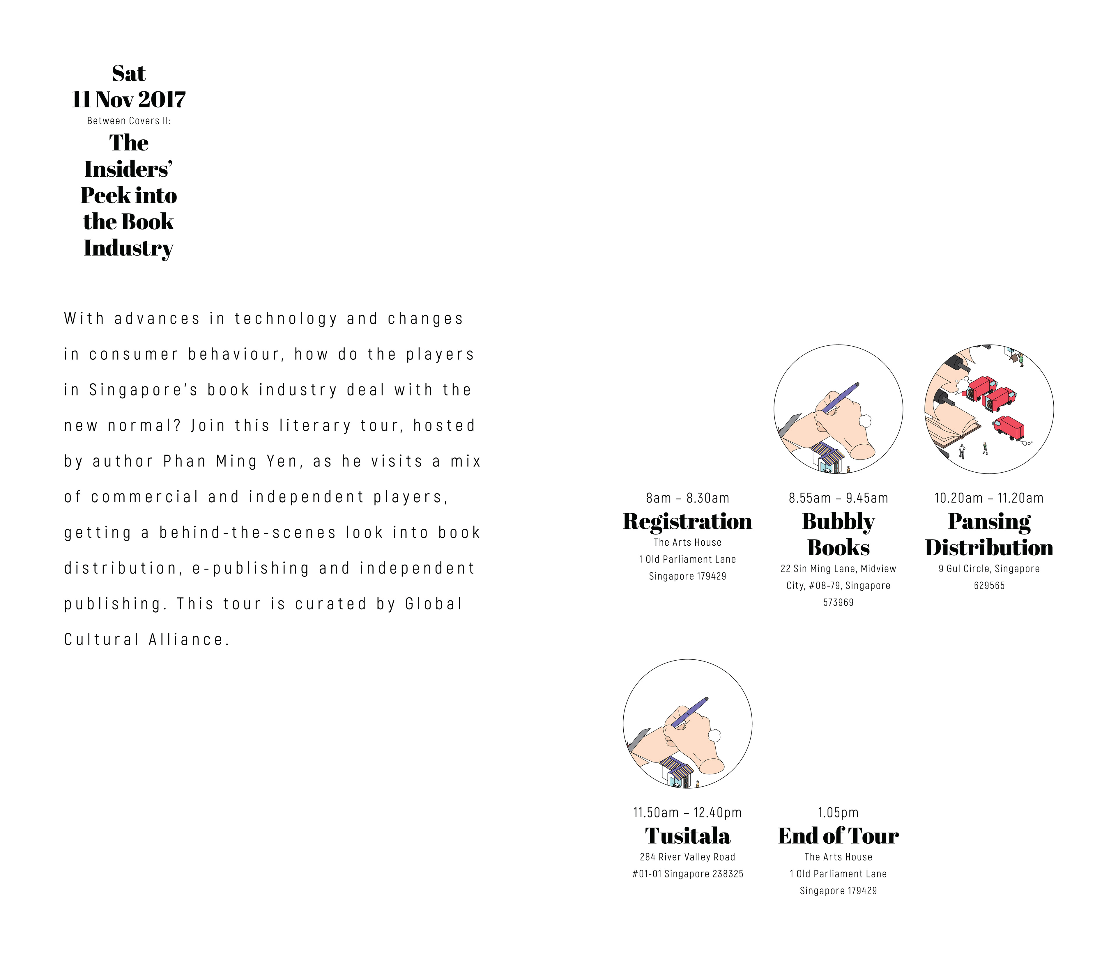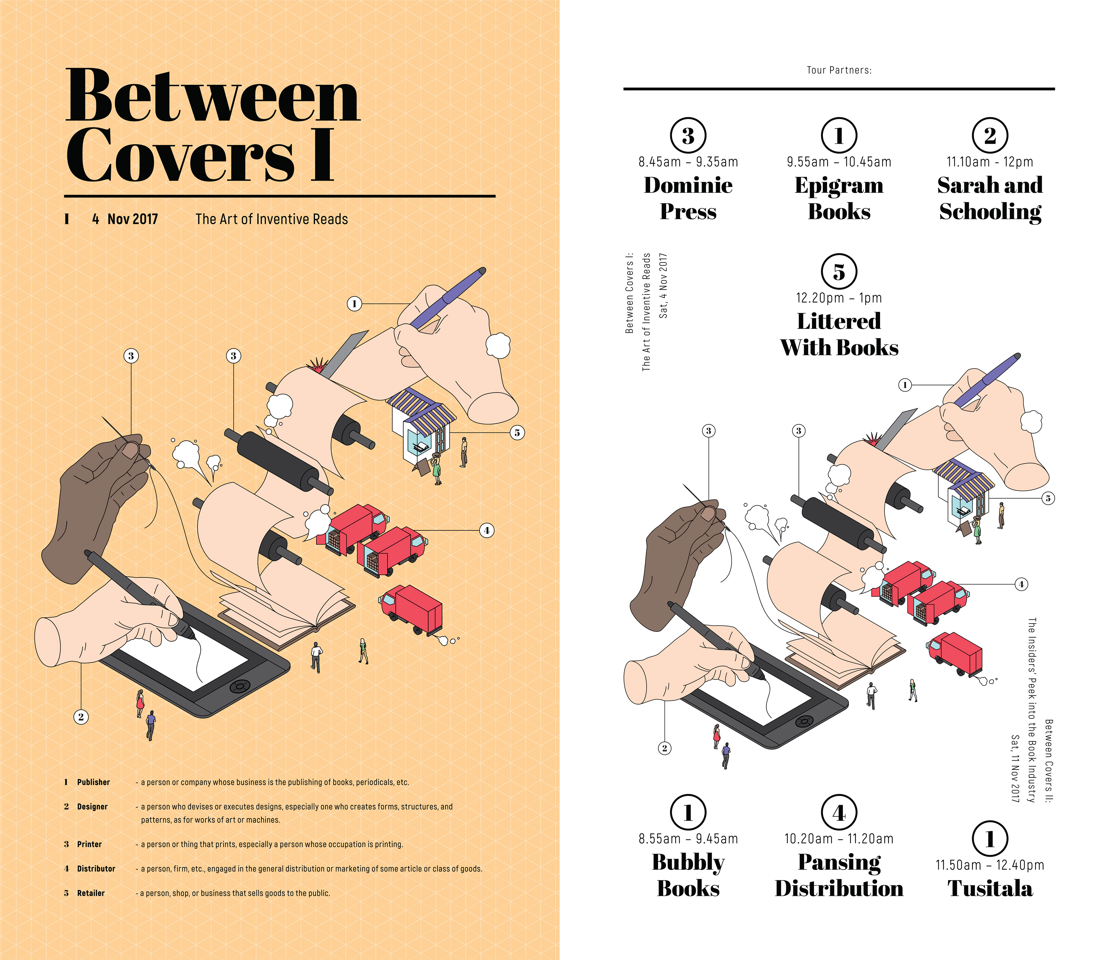 Collaterals for a tour to discover Singapore's book industry from designing, publishing, printing, distribution to retail. The tour also looks at the impact of digitisation and new technology on the industry. Featured on DRAWN/DESIGNED An Exhibition by The Design Society x OIC for Illustration Arts Festival 2018