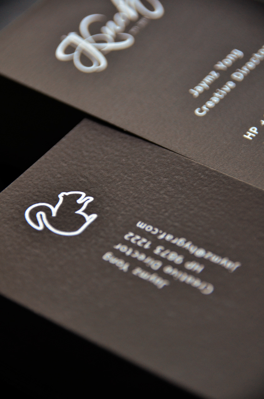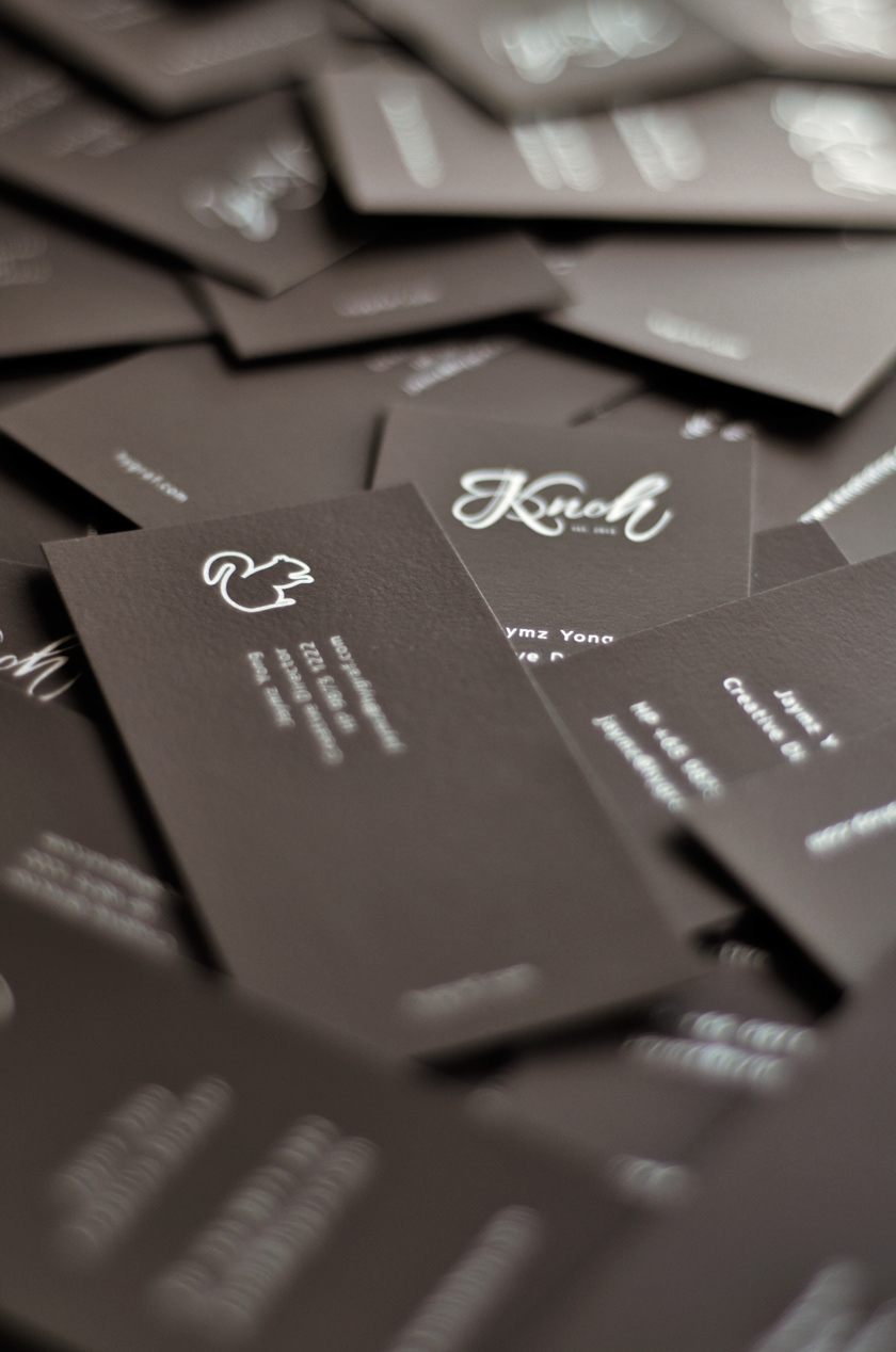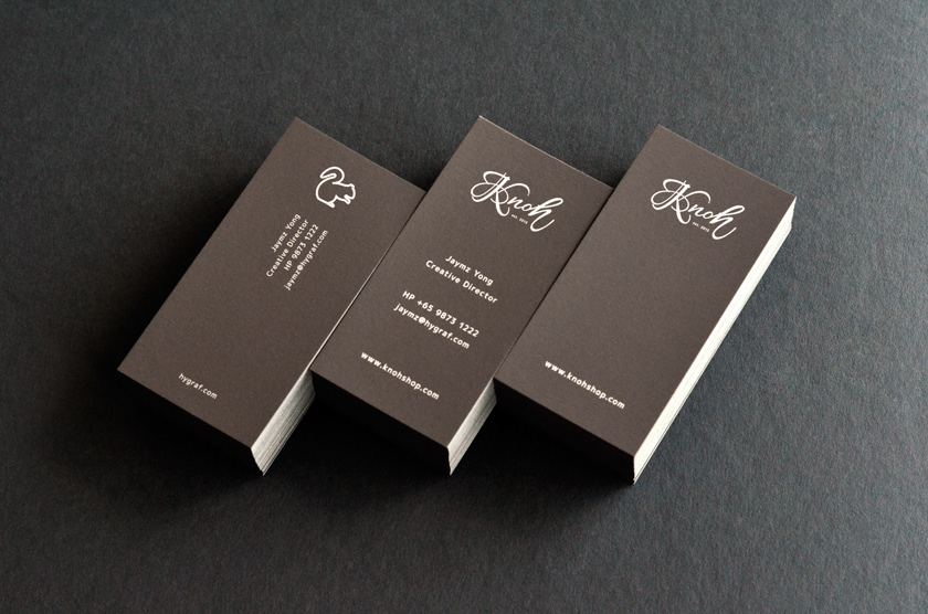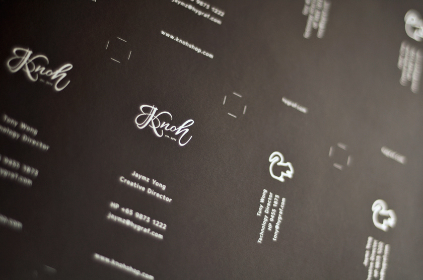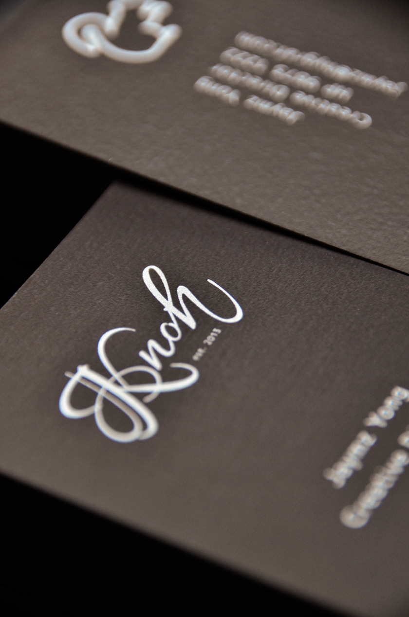 Namecard design for hypergraf and Knoh using 301gsm Touche Mink paper from RJ paper. The metallic spot colour stands out from the paper colour.