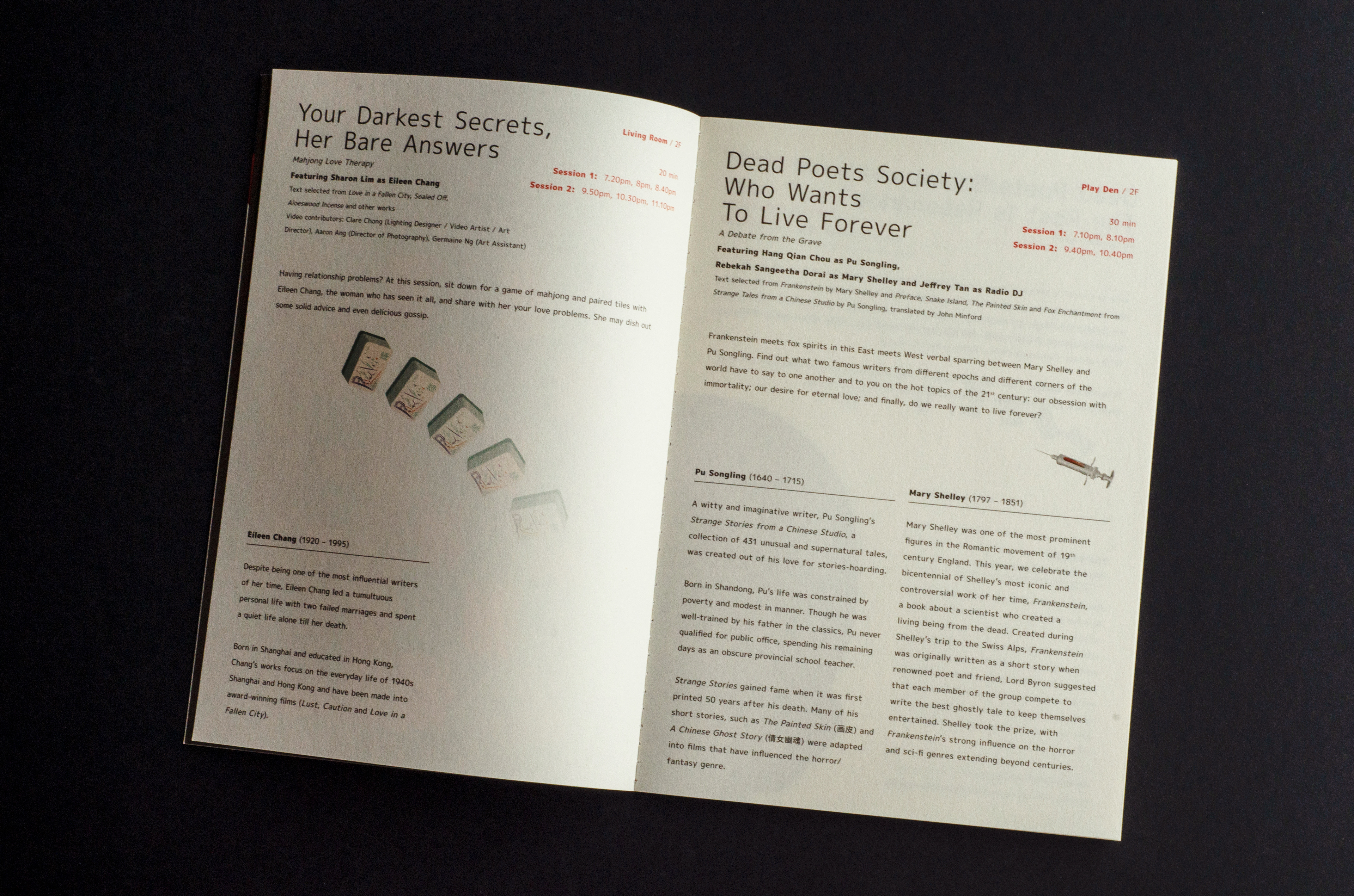 A multi-sensory experience with immersive theatre and interactive installations. The Ghost in Your Head is an invitation for the audience to examine his/her own perception of reality through an exploration of the borders and limits of the metaphysical realms, to examine his /her own past traumas, deeds or actions which continually haunt the present.